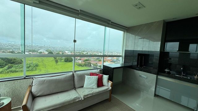 Apartamento sofisticado com 108m², perfeito para quem busca conforto, modernidade e excelente localização. O imóvel conta com 3 quartos, sendo 1 suíte espaçosa com banheiro elegante e duas cubas, oferecendo mais praticidade no dia a dia. A sala super ampla é integrada à varanda gourmet com churrasqueira a carvão, criando um ambiente ideal para receber amigos e família. Com frente totalmente em vidro, o apartamento é extremamente iluminado e bem ventilado, valorizando ainda mais o acabamento de alto padrão. A cozinha americana com cooktop complementa o projeto moderno e funcional. Possui varanda técnica estrategicamente posicionada, com possibilidade de climatização em todos os ambientes. Localizado no 1º andar, o prédio oferece salão de festas e o imóvel dispõe de 2 vagas de garagem abertas. 📍 Localização privilegiada: A apenas 50 metros do Supermercado Leal e 500 metros do Clube SESI, garantindo praticidade e qualidade de vida.