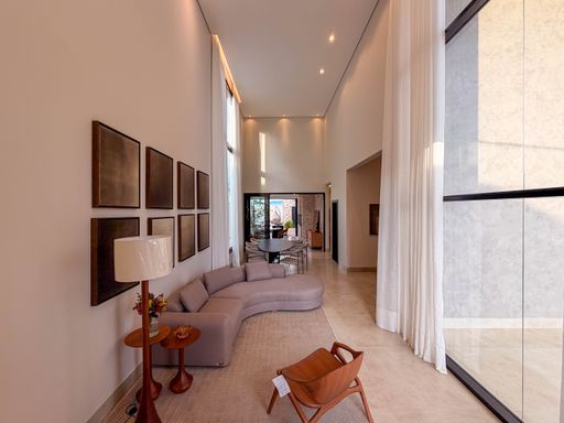 Casa térrea de alto padrão em construção, com projeto moderno e integração impecável dos ambientes, ideal para quem busca sofisticação, conforto e exclusividade. Com 212 m² de área construída em um terreno de 360 m², o imóvel conta com pé direito duplo, proporcionando amplitude e excelente iluminação natural. São 3 suítes, sendo uma master com closet e persianas automatizadas, além de escritório com possibilidade de reversão para uma quarta suíte. A área social foi projetada para oferecer funcionalidade e elegância, com espaço gourmet integrado e churrasqueira, além de lavabo interno e externo para atender a área de lazer. O imóvel já possui infraestrutura completa para instalação de piscina ou spa. Os acabamentos seguem padrão elevado, com portas em ACM, porcelanatos de grandes marcas, metais e louças de alto padrão, bancadas esculpidas, além de projeto luminotécnico assinado. Conta ainda com tubulação pronta para ar-condicionado, gás subterrâneo e excelente qualidade construtiva com laje armada e materiais de primeira linha. Localizado em condomínio fechado, oferece segurança, privacidade e alto potencial de valorização. Previsão de entrega: Abril/2026