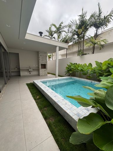 Casa nova, moderna e cheia de estilo com 182m² de construção em um terreno de 360m², perfeita para quem busca conforto, sofisticação e praticidade no dia a dia! São 3 suítes aconchegantes, incluindo uma suíte master com closet, iluminação especial e acesso direto ao jardim; todas com janelas blackout e ar-condicionado já instalado. A sala impressiona com seu pé-direito de 5 metros, trazendo amplitude e elegância. A cozinha com bancada em ilha é integrada à área gourmet com churrasqueira, ideal para receber amigos e família, já equipada com cooktop de 5 bocas, armários planejados e cristaleira. A área externa é um verdadeiro refúgio, com piscina aquecida, prainha, hidromassagem e iluminação em LED. Paisagismo completo com irrigação automatizada, lavabo externo, despensa e lavanderia separadas. Conta ainda com sistema de segurança com câmeras e monitoramento remoto, além de planejados em todos os ambientes: suítes, cozinha, área gourmet, lavanderia e despensa. Garagem para 4 carros, sendo 2 cobertas.