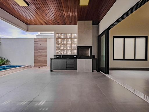 Aqui está uma versão bem mais resumida, mantendo o impacto e os principais diferenciais: Vende-se casa de alto padrão com 157,5 m², piscina com raia de 9 m e calçamento em pedra. Possui pé-direito de 4,20 m, porcelanato Porto Belo, esquadrias de alumínio e porta em ACM. São 3 suítes, incluindo master com closet, banheiros com nichos São Gabriel e bancadas em quartzo. Área gourmet com churrasqueira e bancadas Kouros. Construção reforçada em blocos e radier, hidráulica Deca e Rocca, preparação para aquecimento e hidromassagem, sistema trifásico e garagem para até 4 carros.