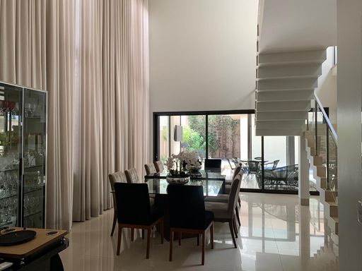 Condomínio Jardins Gênova. Luxo, conforto e tecnologia em um só lugar! Espetacular sobrado com 468 m² de terreno e 396 m² de área construída, totalmente mobiliado e pronto para morar. Acabamentos de altíssimo padrão, iluminação 100% em LED, porcelanato em todos os ambientes e esquadrias de alumínio marrom. Destaque para a piscina aquecida de 53 mil litros com hidros, ozônio e iluminação em aço 316, além da sauna para 12 pessoas e um espaço gourmet completo, com churrasqueira, cooktop, som JBL e telão automatizado de 250”. Possui energia solar com 20 placas, 7 aparelhos de ar-condicionado, cozinha planejada com ilha e eletros premium, salas amplas com pé-direito duplo de 8 m, 4 suítes (2 com sacada) e suíte master de 60 m² com acabamento em mármore Crema Marfil. Banheiros com aquecimento solar e metais Deca, garagem para 6 carros e jardim formado. Imóvel impecável, moderno e pronto para viver com todo conforto e estilo! Agende sua visita e encante-se!