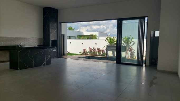 Casa nova à venda com projeto moderno, excelente padrão de acabamento e ambientes pensados para oferecer conforto, funcionalidade e qualidade de vida. Com 236 m² de área construída em um terreno de 436 m², o imóvel conta com 4 suítes, sendo 1 suíte master com closet e banheira, além de escritório com banheiro, que pode ser facilmente transformado em uma 5ª suíte. A área social foi projetada para oferecer integração e praticidade, com sala de TV, lavabo, sala conjugada com cozinha e espaço gourmet, criando um ambiente amplo e agradável para convivência e recepção. A casa dispõe ainda de lavanderia, despensa e marcenaria completa, agregando mais funcionalidade ao dia a dia. Na área externa, o imóvel conta com piscina equipada com cascata, hidromassagem, iluminação e aquecimento solar, além de jardim com irrigação automatizada. Entre os diferenciais, destacam-se energia fotovoltaica, aquecimento solar, gás canalizado, janelas automatizadas, louças e metais Deca, box nos banheiros e portas internas em ACM com 2,30 m de altura, reforçando o cuidado com acabamento, conforto e modernidade. Uma ótima opção para quem busca morar em condomínio com espaço, tecnologia e excelente padrão construtivo.
