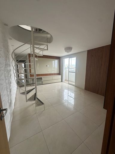 Cobertura duplex com 140,60 m² de área privativa, design moderno e excelente distribuição: no 1º piso, hall de entrada, sala de TV com pé-direito duplo, sala de jantar, cozinha funcional, lavanderia, 1 quarto, banheiro social e 1 suíte; no 2º piso, mais 1 suíte, sala íntima e uma incrível varanda gourmet com churrasqueira, hidromassagem e lavabo. Diferenciais: entregue pintado e com piso laminado Durafloor novo. Condomínio com portaria 24h e playground. Duas vagas de garagem (24 m²).