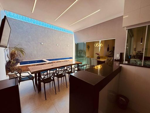 Casa moderna e bem planejada em lote de 250 m² com 160 m² de área construída, oferecendo 3 quartos com armários planejados, sendo uma suíte com closet e ar-condicionado. A cozinha e a área de serviço são completas e funcionais, com armários sob medida. A sala de estar impressiona com pé-direito de 5 metros, garantindo charme e amplitude. Na área externa, o destaque vai para a área gourmet com churrasqueira e banheiro, perfeita para receber amigos, além de uma piscina privativa com aquecimento, cascata, iluminação em LED e paisagismo pronto. Conta ainda com quarto de apoio para armazenamento. Segurança e praticidade com portão eletrônico, cerca elétrica e concertina. Ideal para quem busca conforto, estilo e lazer em um só lugar.