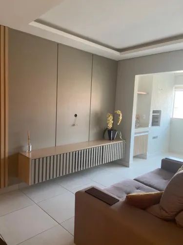 Apartamento moderno de 93m² com 3 quartos, incluindo uma suíte aconchegante; sala de estar e jantar integradas com painel planejado, cristaleira e sapateira que valorizam o ambiente; cozinha completa com armários sob medida e coifa; varanda gourmet perfeita para receber, com churrasqueira, bancada em granito e pia; banheiros elegantes com armários, box em vidro e espelhos; área de serviço funcional, separada e com armários planejados; escritório ou estação de estudos já mobiliado; piso em porcelanato em todos os ambientes; armários planejados em todos os quartos e 2 vagas de garagem (presas). Ideal para quem busca conforto, praticidade e estilo em um só lugar.