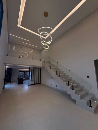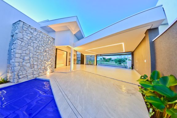 Casa térrea de luxo com pé-direito duplo, 3 suítes (master com closet), piscina aquecida em pastilhas com cascata, iluminação assinada, energia fotovoltaica, porcelanatos Portobello e Biancogress, bancadas em mármore, metais Deca, automação na irrigação, Wi-Fi mesh, tomada para carro elétrico e paisagismo pronto. Acabamento premium, tecnologia moderna e localização excelente. Um projeto impecável, elegante e pronto para encantar.