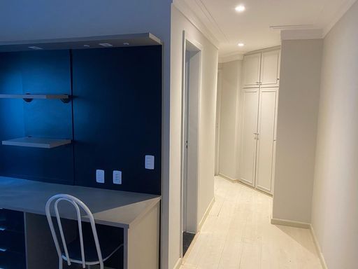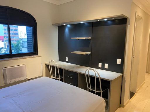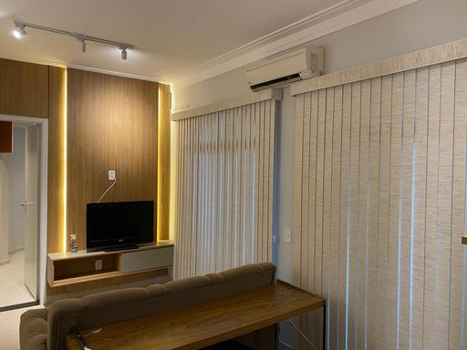 O apartamento possui móveis planejados, marcenaria sob medida, além de estar equipado com ar-condicionado na sala e no quarto, trazendo ainda mais comodidade no dia a dia. A cozinha já conta com eletrodomésticos e excelente capacidade de armazenamento, tornando o imóvel ainda mais prático e funcional.