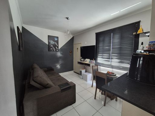 O imóvel conta com 2 quartos, além de armários planejados na cozinha, área de serviço, banheiro e em um dos quartos, proporcionando melhor organização no dia a dia.