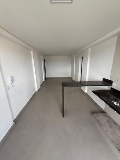 O imóvel conta com 2 quartos, sendo 1 suíte, banheiro social, sala em dois ambientes com varanda, além de cozinha integrada com bancada em granito, área de serviço com lavanderia e despensa.