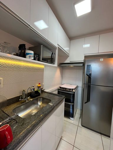 Oportunidade! Apartamento térreo com 55m², 2 quartos com armários planejados, banheiro moderno com box e espelho, sala aconchegante, cozinha planejada com coifa, lavanderia e varanda, 1 vaga coberta. Prédio com elevador. Condomínio completo com 6 blocos, área de lazer com churrasqueira e até mini mercado.! Ideal para quem busca conforto, praticidade e ótimo custo-benefício!