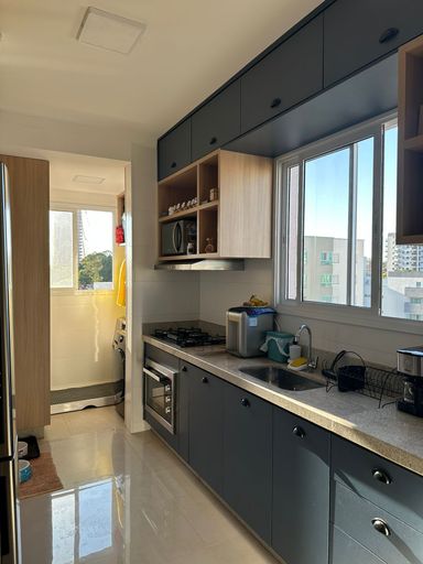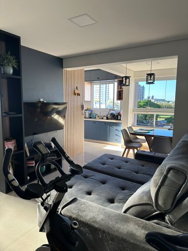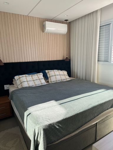 Apartamento impecável, pronto para morar! Totalmente montado com móveis planejados de alto padrão em todos os ambientes e guarda-roupas em vidro reflecta nos quartos, unindo elegância e funcionalidade. São 2 quartos (1 suíte), sala ampla para dois ambientes, banheiro social, cozinha e lavanderia com ótimo aproveitamento de espaço. Acabamentos modernos: porcelanato, bancadas em granito, teto rebaixado em gesso e iluminação planejada que valoriza cada detalhe. Já vem com ar-condicionado, cortinas sob medida, cooktop, forno, depurador e projeto de iluminação completo. O condomínio oferece academia equipada, salão de festas e hall de entrada decorado. E para completar: 2 vagas de garagem.