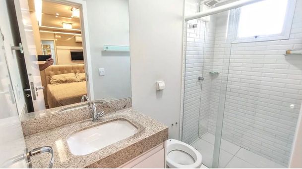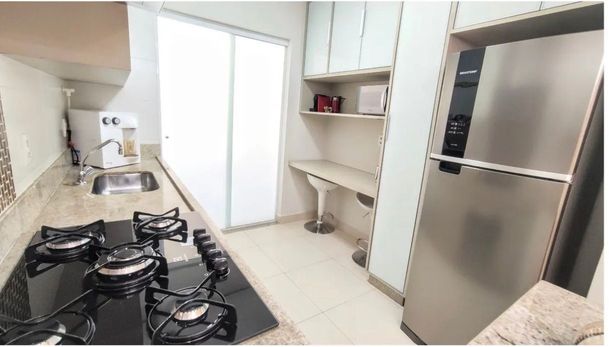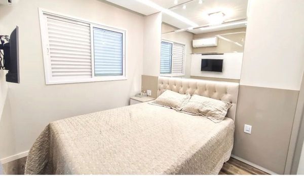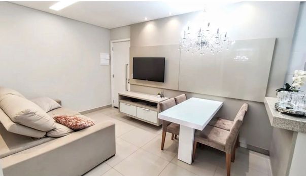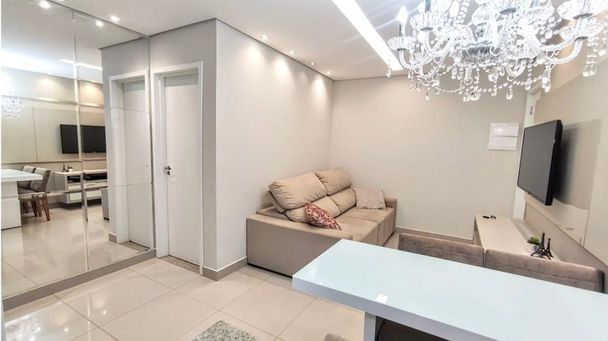 Apartamento de 51 m² totalmente planejado e decorado, pronto para morar, com móveis e eletrodomésticos: sofá, TV, fogão, coifa, forno elétrico, máquina de lavar, lustre e mesa com 4 cadeiras. Conta com 2 quartos, sendo 1 suíte, oferecendo conforto e praticidade. O condomínio dispõe de elevador, salão de festas e 1 vaga de garagem com espaço para 2 carros, unindo conveniência e segurança em um espaço compacto e funcional.