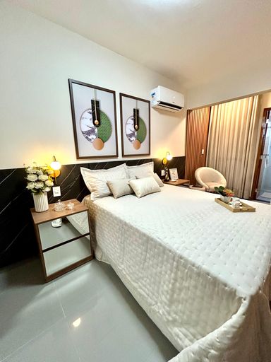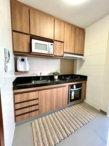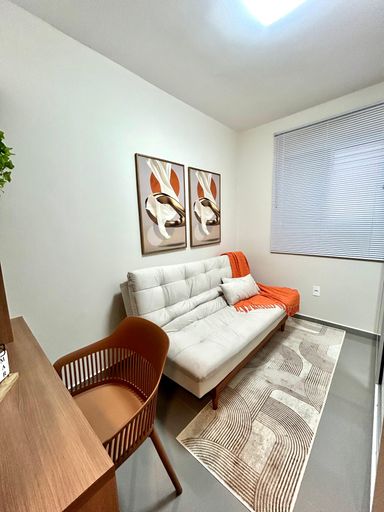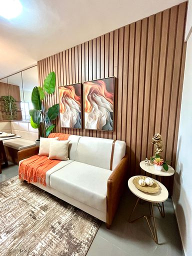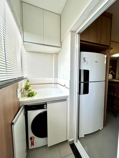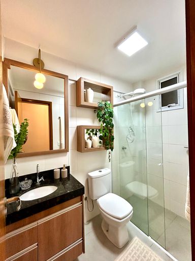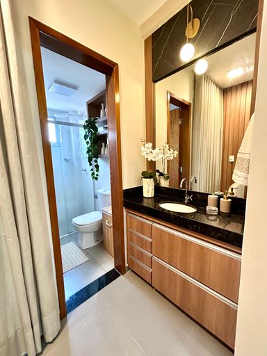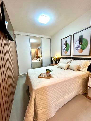 Apartamento mobiliado e decorado, com 62,30 m², sol da manhã e pronto para morar. São 2 quartos com armários, sendo 1 suíte com sacada e ar-condicionado, banheiro social com armário, sala em dois ambientes com móveis planejados, cozinha equipada com armários sob medida, área de serviço com armário e sacada. Acabamento em porcelanato. Condomínio moderno com 2 elevadores, salão de festas, hall com dois banheiros, sistema de segurança com câmeras, acesso por biometria, senha e tag, além de água inclusa. 1 vaga de garagem coberta com 10,80 m².