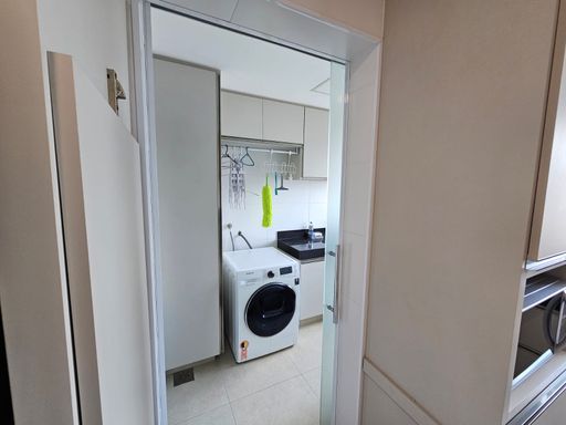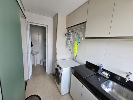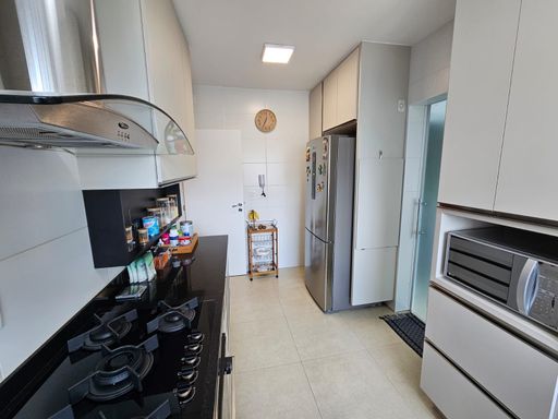 - Varanda gourmet fechada com blindex, equipada com armários;