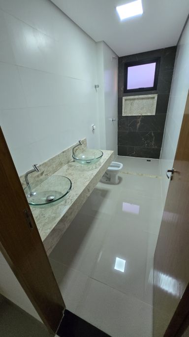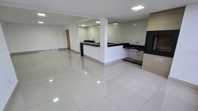 O imóvel conta com 3 quartos, sendo 1 suíte espaçosa com banheiro elegante e duas cubas, oferecendo mais praticidade no dia a dia. A sala super ampla é integrada à varanda gourmet com churrasqueira a carvão, criando um ambiente ideal para receber amigos e família.