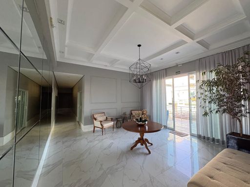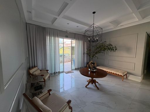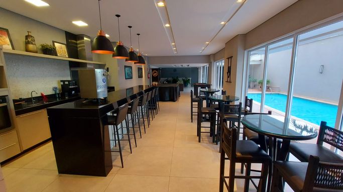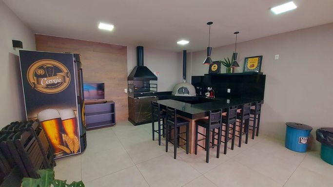 O imóvel conta com sala em 2 ambientes, lavabo e varanda gourmet, criando um espaço agradável para convivência e recepção.