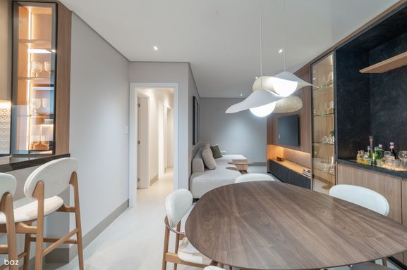 Este apartamento foi projetado para oferecer um estilo de vida sofisticado e confortável. Com 3 quartos, sendo 1 suíte master com closet, dois chuveiros e uma cuba dupla, ele combina funcionalidade e elegância. A cozinha americana, moderna e prática, se integra perfeitamente ao espaço, criando um ambiente convidativo para momentos de convivência. A varanda gourmet, ideal para encontros, é o espaço perfeito para relaxar e aproveitar bons momentos. O acabamento de alto padrão inclui piso em porcelanato, rodapé embutido e portas brancas, dando um toque de classe ao imóvel. Com 4 pontos para ar-condicionado, você desfruta de conforto o ano todo.