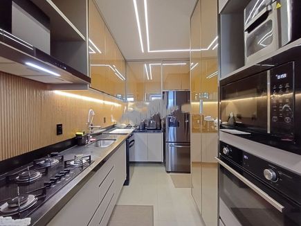 A área gourmet é um dos grandes destaques do imóvel, com churrasqueira a gás, mini cozinha e som ambiente integrado à automação, proporcionando um espaço perfeito para receber com conforto e funcionalidade.