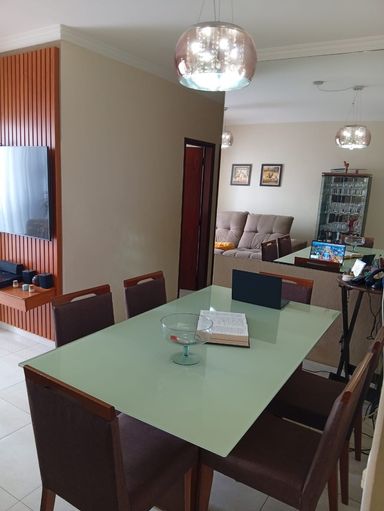Apartamento moderno de 73 m², com 3 quartos (1 suíte), armários planejados, 2 banheiros com blindex, cozinha e área de serviço planejadas, sala com painel de TV, sala de jantar com espelho e lustre, piso em porcelanato, sacada ampliada com blindex e 1 vaga de garagem. Condomínio fechado com portaria 24h, salão de festas e quadra esportiva.