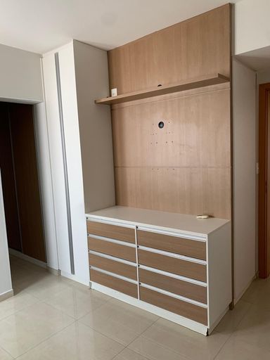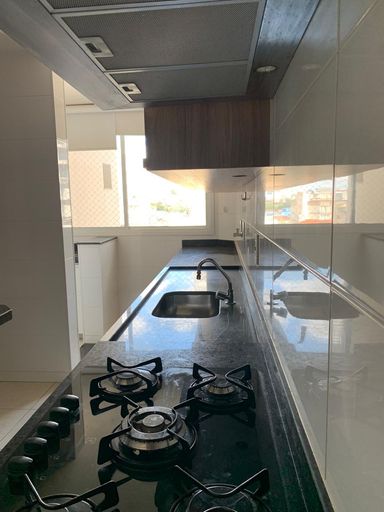 Lindo apartamento com 122m², piso em porcelanato, sala elegante em dois ambientes com painel de TV e espelho, cozinha moderna com marcenaria planejada, coifa, cooktop e forno embutido, lavanderia funcional com armários. São 4 quartos com armários embutidos, incluindo uma suíte climatizada com closet. Banheiro social com armário e box de vidro. Condomínio completo com área gourmet, elevador e facilidades inclusas como água filtrada, gás encanado e limpeza das áreas comuns. Para completar, 2 vagas de garagem amplas e cobertas.