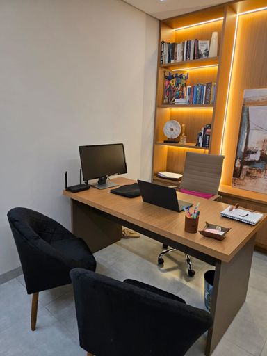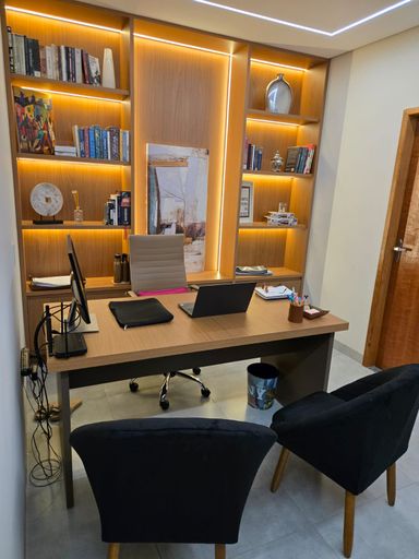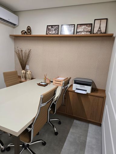 - Teto rebaixado em gesso, trazendo um toque moderno aos ambientes.