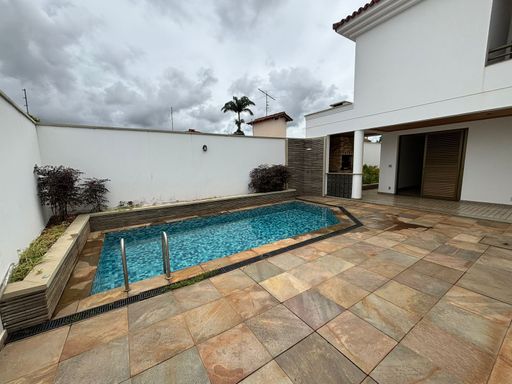 Casa exclusiva de alto padrão, com projeto amplo e sofisticado, no 1º andar possui garagem para 2 carros, escritório com banheiro ao lado, depósito abaixo da escada, cozinha ampla, dependência de empregada com banheiro, despensa, lavanderia espaçosa, copa, sala em dois ambientes com pia e área de lazer com piscina e churrasqueira; no 2º andar conta com 2 suítes com sacada, jardim de inverno, roupeiro, sala de TV com sacada e suíte principal com sacada, roupeiro, banheira de hidromassagem e dois chuveiros. Imóvel exclusivo, ideal para quem busca conforto, privacidade e alto padrão. Agende sua visita!
