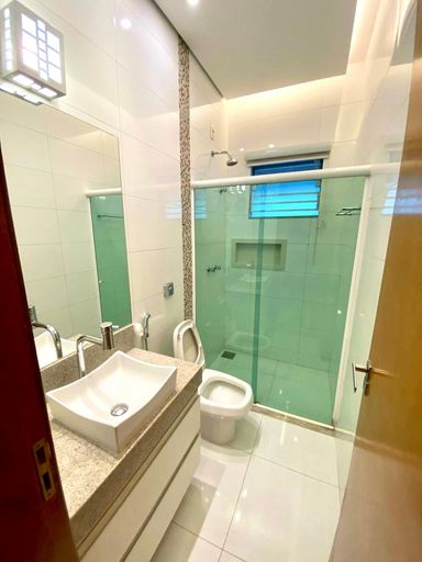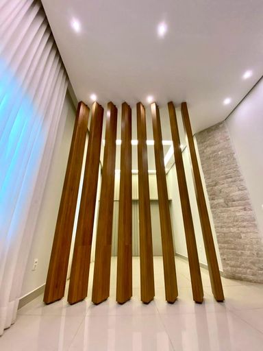 Casa encantadora e moderna, com sala ampla e Persiana integrada, pé-direito alto que valoriza a iluminação natural, cozinha integrada à área gourmet com churrasqueira a carvão e bancada em granito preto, piscina aquecida com trocador de calor, o aquecimento solar nas torneiras, energia fotovoltáica, sistema de completo de segurança, marcenaria completa, 3 suítes + 1° multiuso conversível em 4° suíte (cinema, Home Office) elegante cristaleira com prateleiras de vidro e fundo espelhado, banheiro externo, belíssima piscina com impressionante transparência e banheira, Varanda gourmet, lavanderia ampla, Despensa, Lavabo, portão da garagem com motor Turbo Jet, garagem para 2 carros livres.