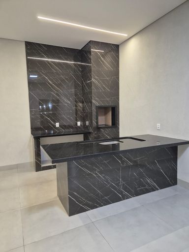 Possui cozinha americana, lavabo, área de serviço e uma varanda gourmet com churrasqueira e bancadas, ideal para momentos de lazer. Conta ainda com espaço nos fundos e garagem coberta para até 3 carros.