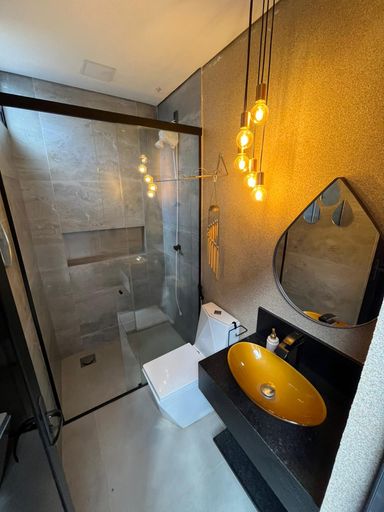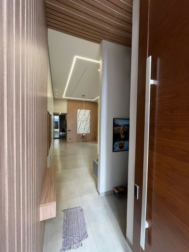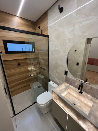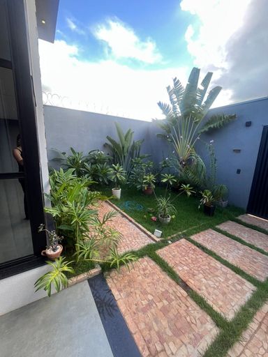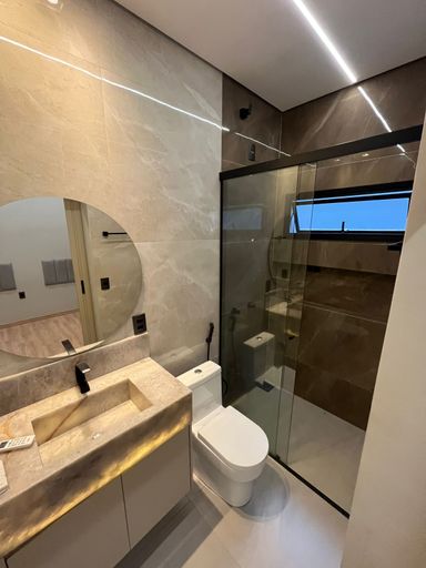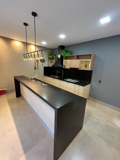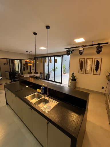 Casa moderna na Zona Sul, São 215 m² de construção em terreno de 360 m², com 3 suítes, sala com pé-direito alto, escritório com lavabo e 3 vagas de garagem. Área social integrada com cozinha planejada, ilha em granito Preto Via Láctea e iluminação em LED. Piscina aquecida com hidro e cascata, fachada imponente, paisagismo e energia fotovoltaica.