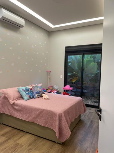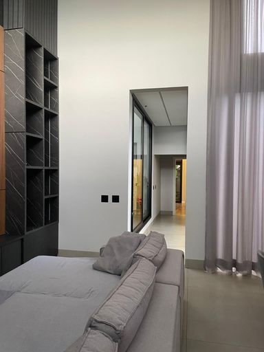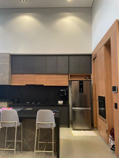 Casa alto padrão, Porteira Fechada, com ambientes integrados e design sofisticado: sala com pé-direito duplo de 5 m, cozinha planejada com ilha de 3 m, área gourmet com churrasqueira a carvão, 3 suítes climatizadas (master com closet, banheira e duchas duplas), piscina aquecida com hidromassagem e cascata, escritório, sistema de segurança e 2 vagas cobertas.