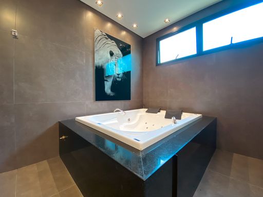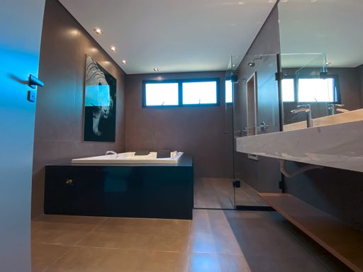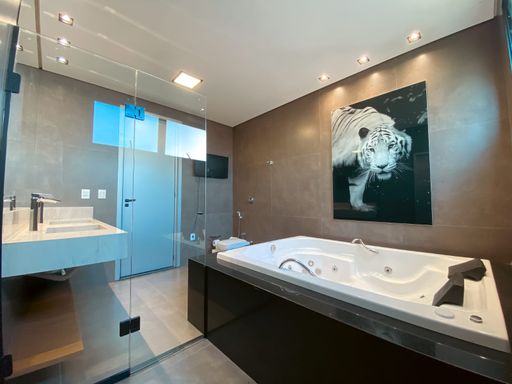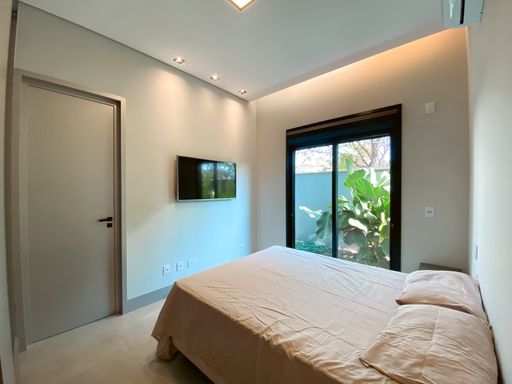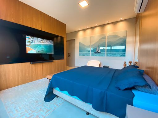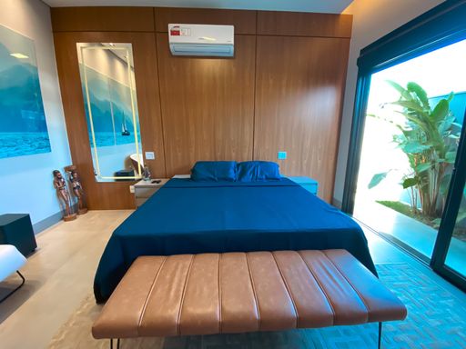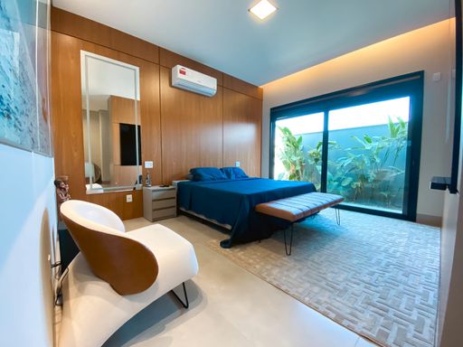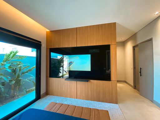 O imóvel possui 3 suítes, sendo uma master, com todos os quartos equipados com portas de persianas automatizadas, garantindo mais praticidade e privacidade.