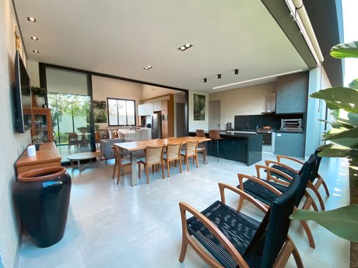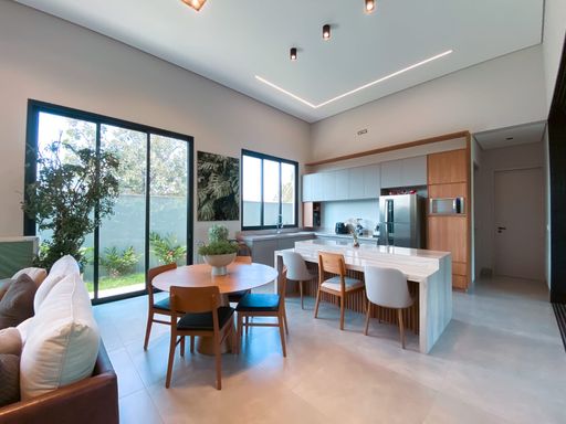 Casa Térrea no Condomínio Arts, implantada em terreno de 420 m² e com 239 m² de área construída, projetada para oferecer conforto, modernidade e integração dos ambientes.