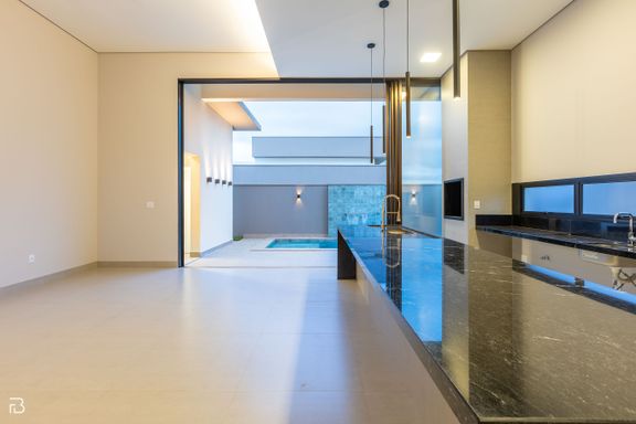 CASA DE ALTO PADRÃO À VENDA. Terreno com 3 suítes , 1 multiuso conversível, sala ampla em vários ambientes integrada com fachada; escritório; lavabo; piscina Revestimento ATOL TURQUESA; garagem para até 5 carros. Conforto e sofisticação, agende sua visita!