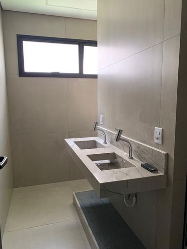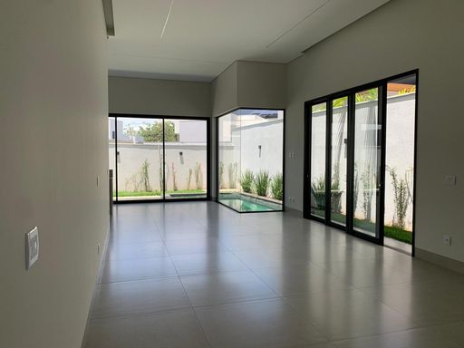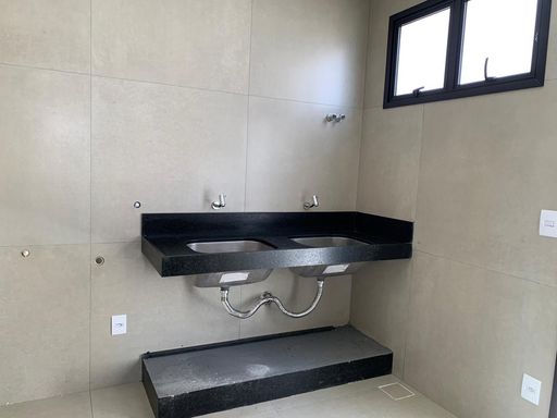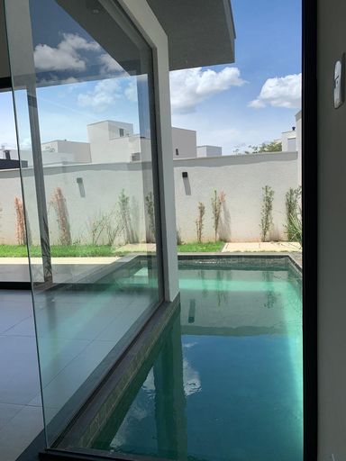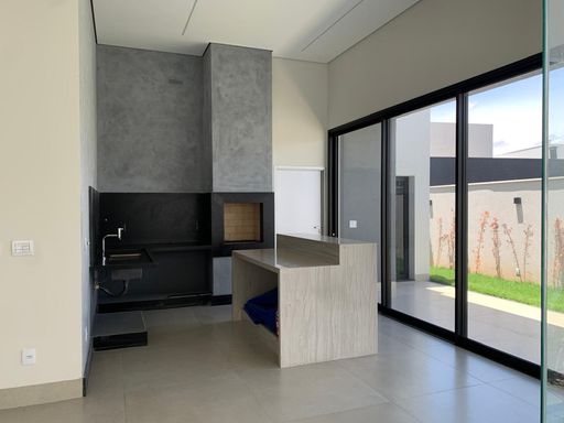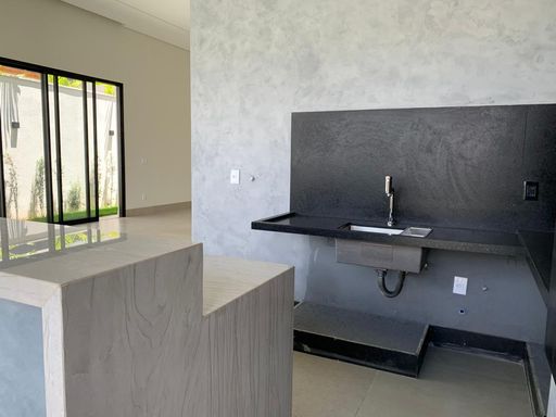 Casa térrea de alto padrão com 233,03 m² de área construída em terreno de 420,46 m², entregue averbada. Possui 3 suítes (1 master com closet), ambiente opcional para escritório ou 4ª suíte, sala de jantar com pé-direito duplo, despensa, área de serviço e depósito. Acabamentos de alto nível: porcelanato 94x94 tom concreto, iluminação 100% LED, esquadrias em alumínio preto com persianas automatizadas, bancadas em granito São Gabriel e quartzito cinza, metais e louças Deca. Varanda gourmet com ilha, churrasqueira e cuba inox. Piscina com hidromassagem, iluminação automatizada e revestimento em pastilhas verdes estilo pedra Hijau. Conta ainda com aquecimento solar, 6 pontos de ar-condicionado instalados, amplo jardim e garagem para até 6 carros.
