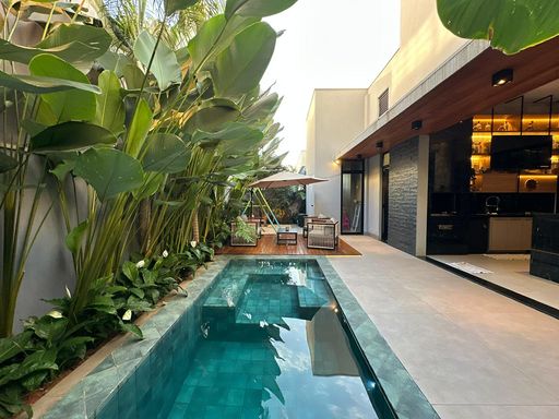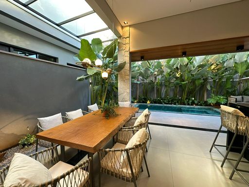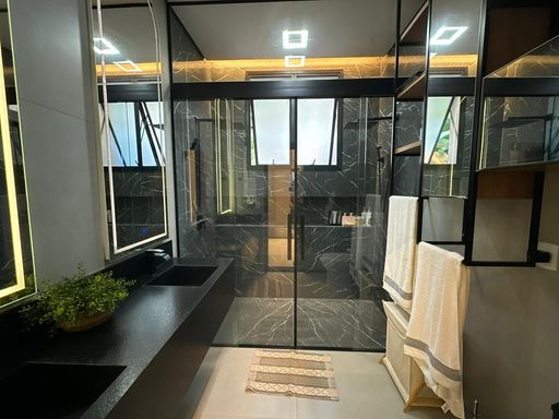 O imóvel possui 227 m² de área construída em um terreno de 454 m², com projeto moderno e ambientes amplos. São 3 suítes, além de um escritório com banheiro completo que pode ser facilmente revertido para uma quarta suíte, trazendo mais versatilidade ao imóvel.