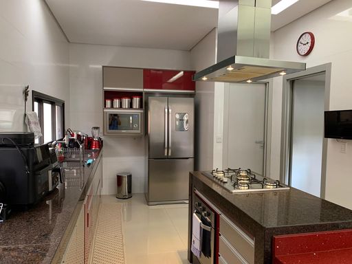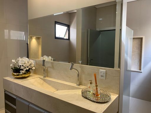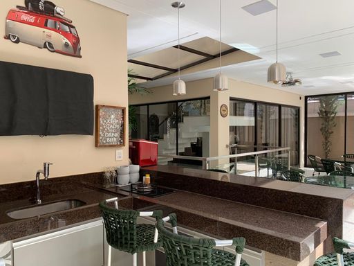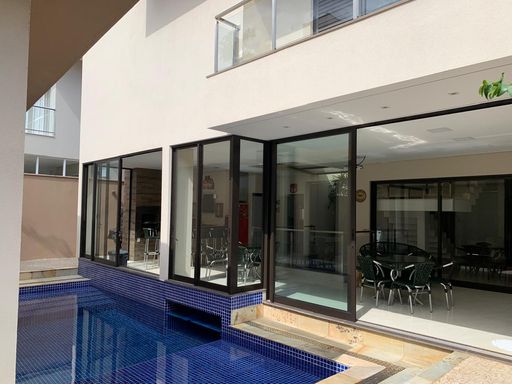 Espetacular sobrado com 468 m² de terreno e 396 m² de área construída, totalmente mobiliado e pronto para morar. Acabamentos de altíssimo padrão, iluminação 100% em LED, porcelanato em todos os ambientes e esquadrias de alumínio marrom.