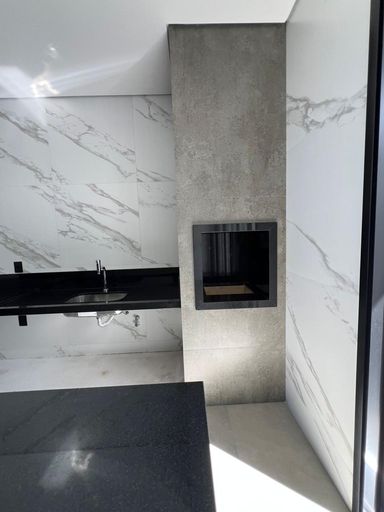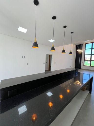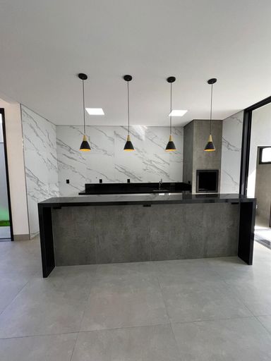 A área social integra sala, cozinha e espaço gourmet, criando um ambiente moderno e acolhedor para o dia a dia e para receber amigos e família. A área gourmet possui churrasqueira, bancadas em granito, ilha central, pendentes e excelente acabamento.
