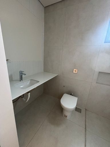 Acabamentos diferenciados com porcelanato Portinari, esquadrias automatizadas na cor cinza e portas internas em ACM na cor champanhe.
