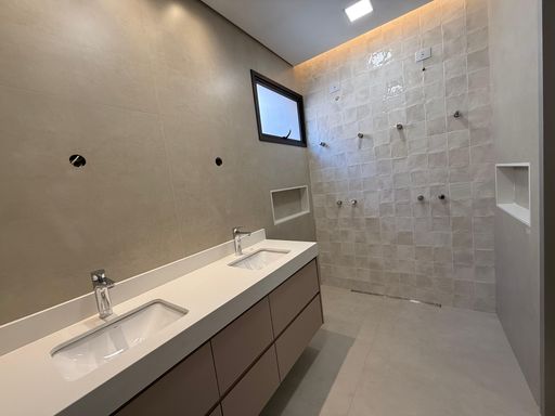Casa térrea de luxo com pé-direito duplo, 3 suítes (master com closet), piscina aquecida em pastilhas com cascata, iluminação assinada, energia fotovoltaica, porcelanatos Portobello e Biancogress, bancadas em mármore, metais Deca, automação na irrigação, Wi-Fi mesh, tomada para carro elétrico e paisagismo pronto. Acabamento premium, tecnologia moderna e localização excelente. Um projeto impecável, elegante e pronto para encantar.