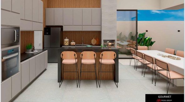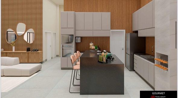 A área social foi projetada para oferecer funcionalidade e elegância, com espaço gourmet integrado e churrasqueira, além de lavabo interno e externo para atender a área de lazer. O imóvel já possui infraestrutura completa para instalação de piscina ou spa.