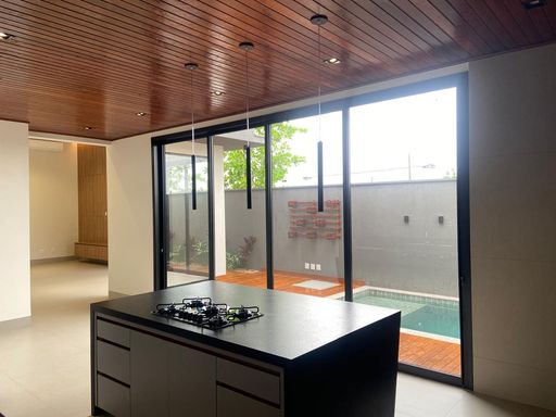 Casa térrea de esquina incrível, com 360 m² de terreno e 216 m² de construção, 3 suítes confortáveis (sendo uma master com closet), escritório ideal para home office, lavanderia funcional, despensa prática, banheiro completo na área de lazer, piscina aquecida com prainha, iluminação em LED e hidromassagem, deck de madeira elegante, área gourmet com forro em madeira e churrasqueira a carvão, paisagismo finalizado, energia solar fotovoltaica instalada, 6 ar-condicionados já instalados, água quente em todas as torneiras e chuveiros, gás canalizado, venezianas automatizadas nos quartos, rebaixamento de gesso com projeto de iluminação em todos os ambientes, pintura externa com acabamento Lamato, portas internas em ACM, banheiros com box e espelhos instalados, tampas de vaso com amortecimento, marcenaria planejada de alto padrão, cozinha equipada com cooktop Brastemp, forno elétrico 84L, micro-ondas, lavadora de louças Brastemp (15 serviços) e cervejeira Consul — tudo já instalado, e para completar: 2 vagas de garagem cobertas.