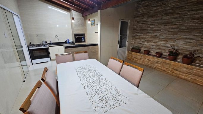 Linda casa com 150m² de área construída, perfeita para quem busca conforto e praticidade. São 3 quartos, incluindo uma suíte equipada com armários planejados, além de banheiro social. Sala de estar ampla e acolhedora, cozinha funcional com armários planejados que facilitam o dia a dia. A área externa conta com um espaço coberto nos fundos e churrasqueira, ideal para receber amigos e aproveitar momentos especiais. O condomínio oferece estrutura completa de lazer e segurança, com portaria 24 horas, ronda, piscinas para adultos e crianças, 3 quadras esportivas, 3 parques infantis, salão de festas e 2 quiosques. Para fechar com chave de ouro, o imóvel dispõe de 2 vagas de garagem cobertas.