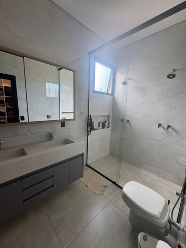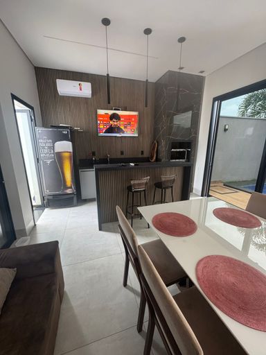 Casa em condomínio fechado – Varanda Sul, 208 m² construídos em terreno de 360 m², alto padrão, fino acabamento, LED e aquecimento solar; 3 suítes (1 master com closet), janelas automatizadas, ar-condicionado; sala com pé-direito duplo, escritório reversível para 4ª suíte, cozinha com ilha, espaço gourmet; piscina aquecida com hidro, marcenaria completa, fachada moderna e 4 vagas de garagem.