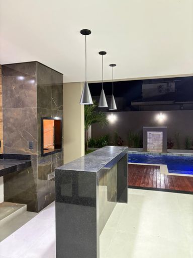 Sobrado com 273 m² de área construída em terreno de 372 m², com 3 suítes com closet e esquadrias automatizadas, sendo a master com terraço e outra com sacada. Ambientes integrados com pé-direito duplo, sala, cozinha e jantar, lavabo e espaço gourmet. Área de lazer com piscina em pastilhas, deck, aquecimento solar, hidromassagem, LED e cascata. 4 vagas de garagem e infraestrutura para ar-condicionado e energia fotovoltaica.