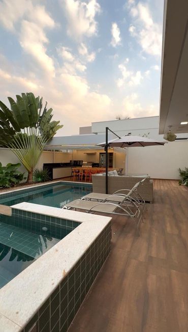 Residência de alto padrão em lote de 450 m², com 294 m² de área construída, projetada para oferecer conforto, sofisticação e lazer completo. O imóvel conta com 3 suítes, escritório, lavabo, sala de TV, sala de jantar, cozinha e jardim de inverno, garantindo excelente iluminação natural. Possui área gourmet interna e externa, piscina com aquecimento solar, ofurô com aquecimento solar e elétrico e sauna. Dispõe ainda de sistema de som ambiente, ar-condicionado em todos os ambientes e sistema de irrigação automatizada, unindo tecnologia, praticidade e qualidade de vida.