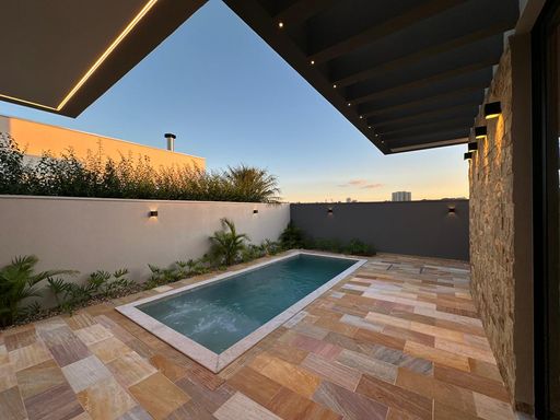 Casa térrea de alto padrão, com projeto moderno, excelente acabamento e ambientes amplos que proporcionam conforto e sofisticação.