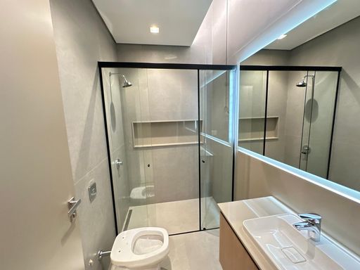 A área social apresenta ambientes integrados, com sala ampla e cozinha planejada completa, além de marcenaria sob medida nos quartos, sala e lavanderia, garantindo praticidade e elegância.