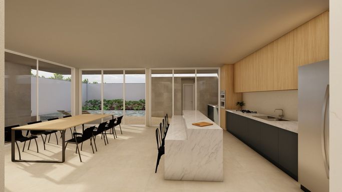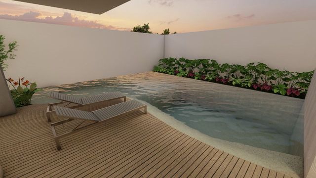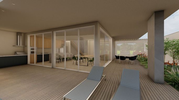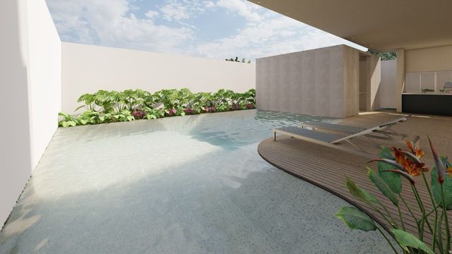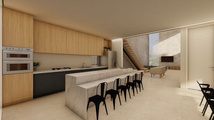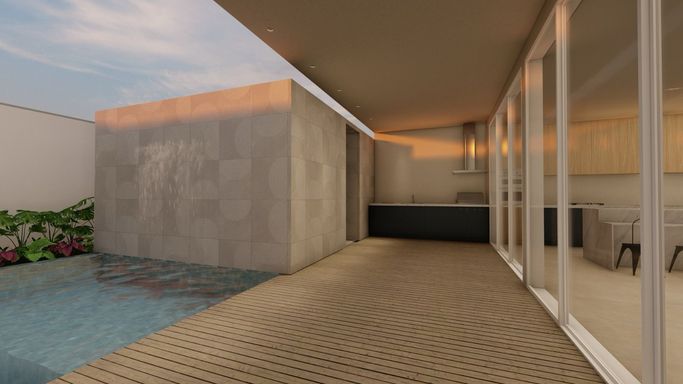 A área social foi projetada para oferecer integração e sofisticação, com bancadas em mármore e ambientes amplos. A área externa traz um grande diferencial: piscina em formato de lago natural, proporcionando uma experiência única de lazer e paisagismo.