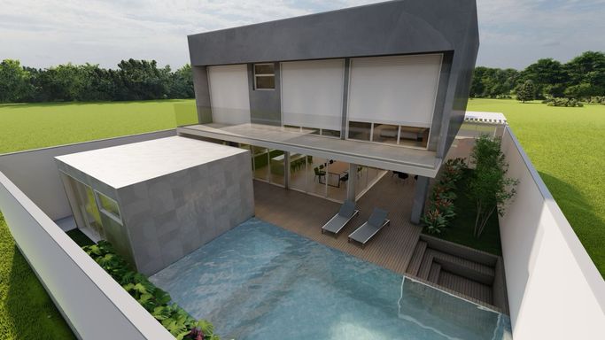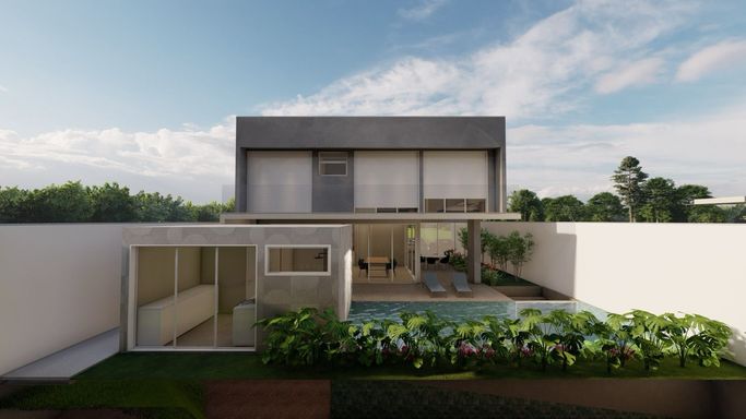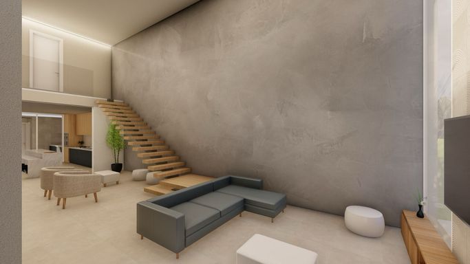 Com 360 m² de área construída em um terreno de 450 m², o projeto se destaca pelo alto padrão de acabamento e soluções modernas, como elevador panorâmico e torneiras inteligentes.