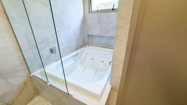 Na área externa, o imóvel conta com piscina equipada com cascata, hidromassagem, iluminação e aquecimento solar, além de jardim com irrigação automatizada.